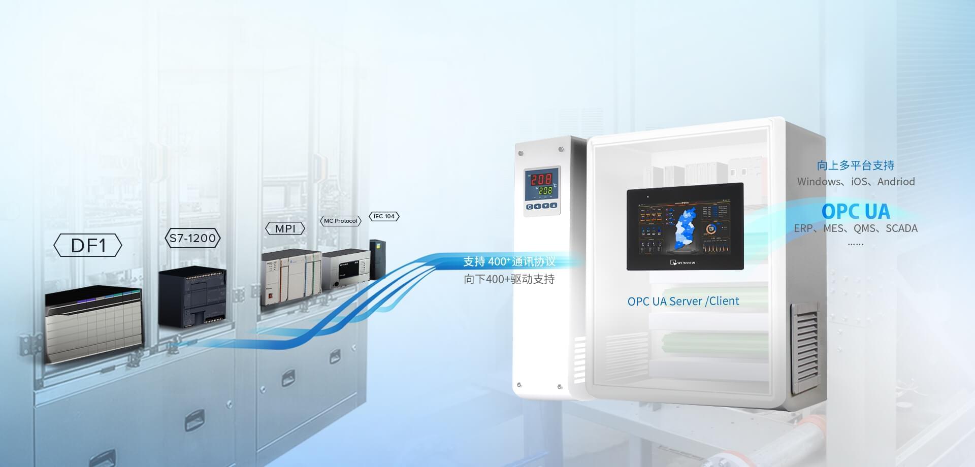 支持 400+ PLC 通訊協議,物聯網通訊協議及數據庫連接,能快速整合現場設備資料。